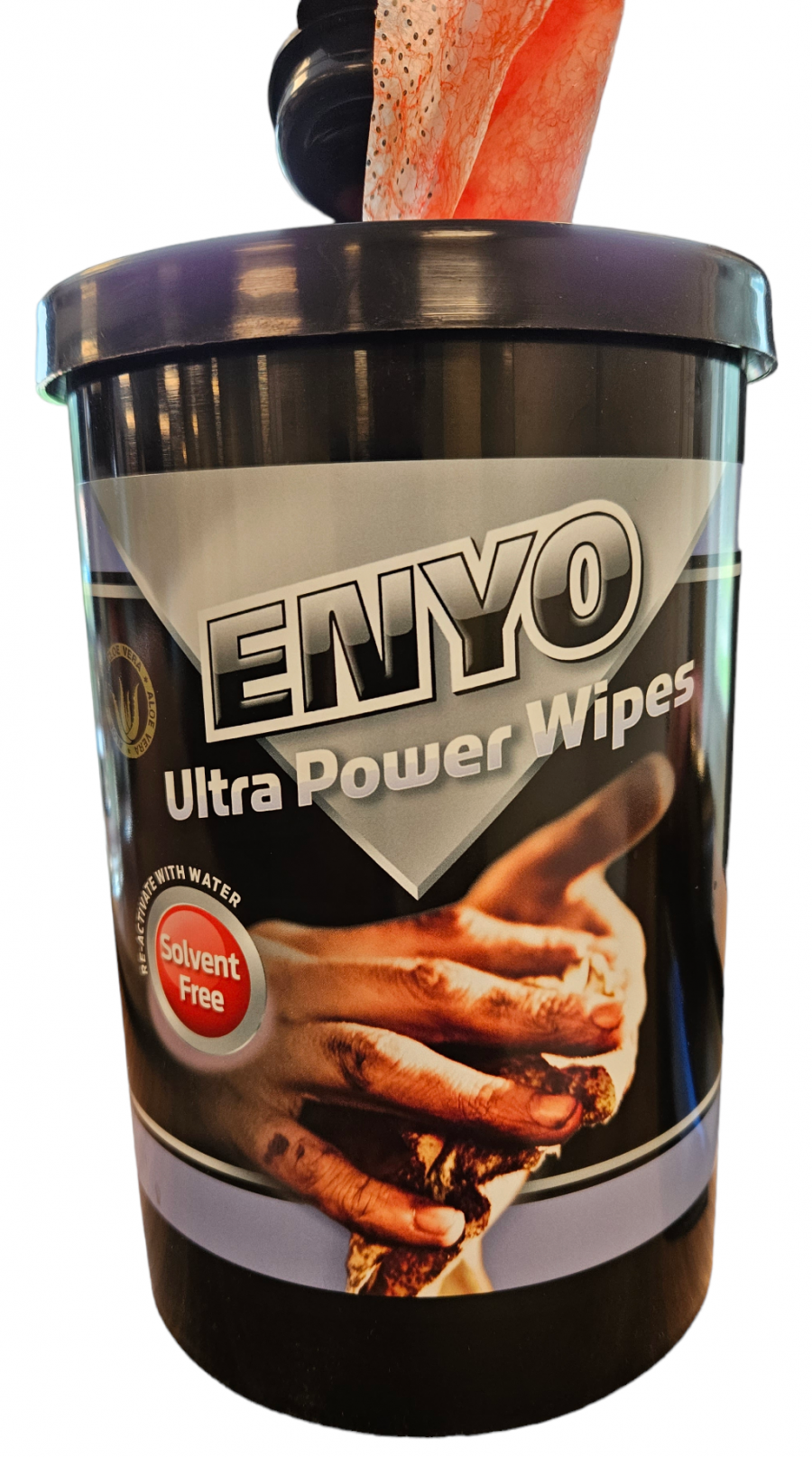 - Enyo Ultra Power Wipes är överlägsen för rengöring av händer, verktyg och hela arbetsområden.